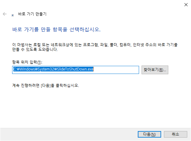 윈도우 10 슬라이드 내려서 PC 종료 버튼 만들기 본문