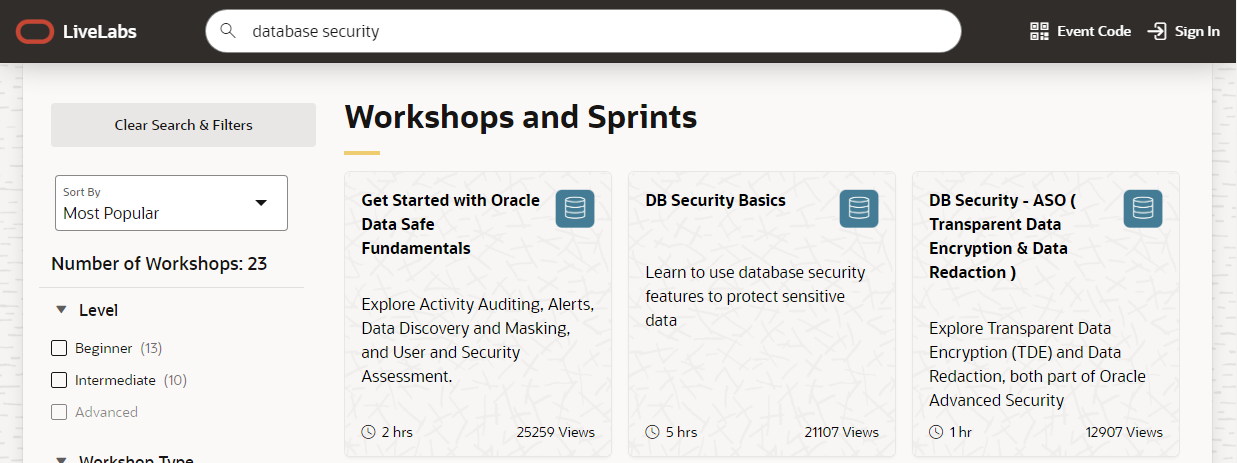 Run on LiveLabs Sandbox 를 클릭한다.