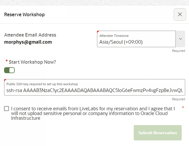 # Public SSH Key required to set up this workshop 에 넣을 키를 만들기 위해 ssh 코드를 생성한다.