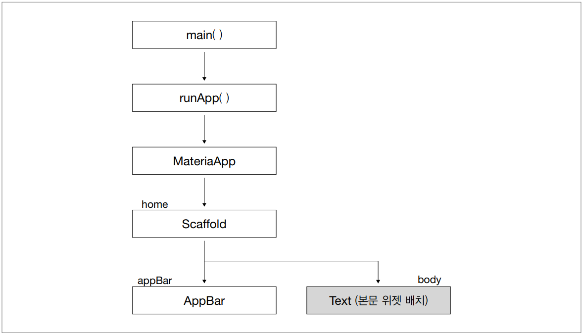 먼저 클래스 이름입니다. _MyHomePageState에서 언더바(_)의 의미는 이 클래스가 동일한 파일에서만 접근할 수 있음(private)을 의미합니다. 다트에서는 자바와 같이 public, private, protected와 같은 접근 제어자의 키워드가 없으며 클래스 이름 앞에 언더바(_)가 있으면 내부(private) 클래스로 봅니다