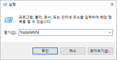 실행할 명령문에 %appdata% 를 입력합니다.