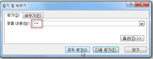 엑셀에서 특수문자가 포함된 문자열 찾기('틸트문자(~)') 본문
